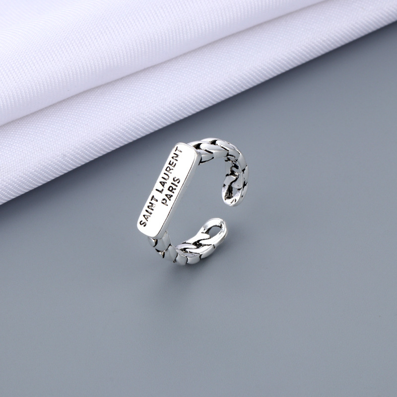 Engraving Minimalist Facet 925 Sterling Silver Couple Ring chic Japanese and Korean All-match Ringed Face Loose Ring for Men and Women Students