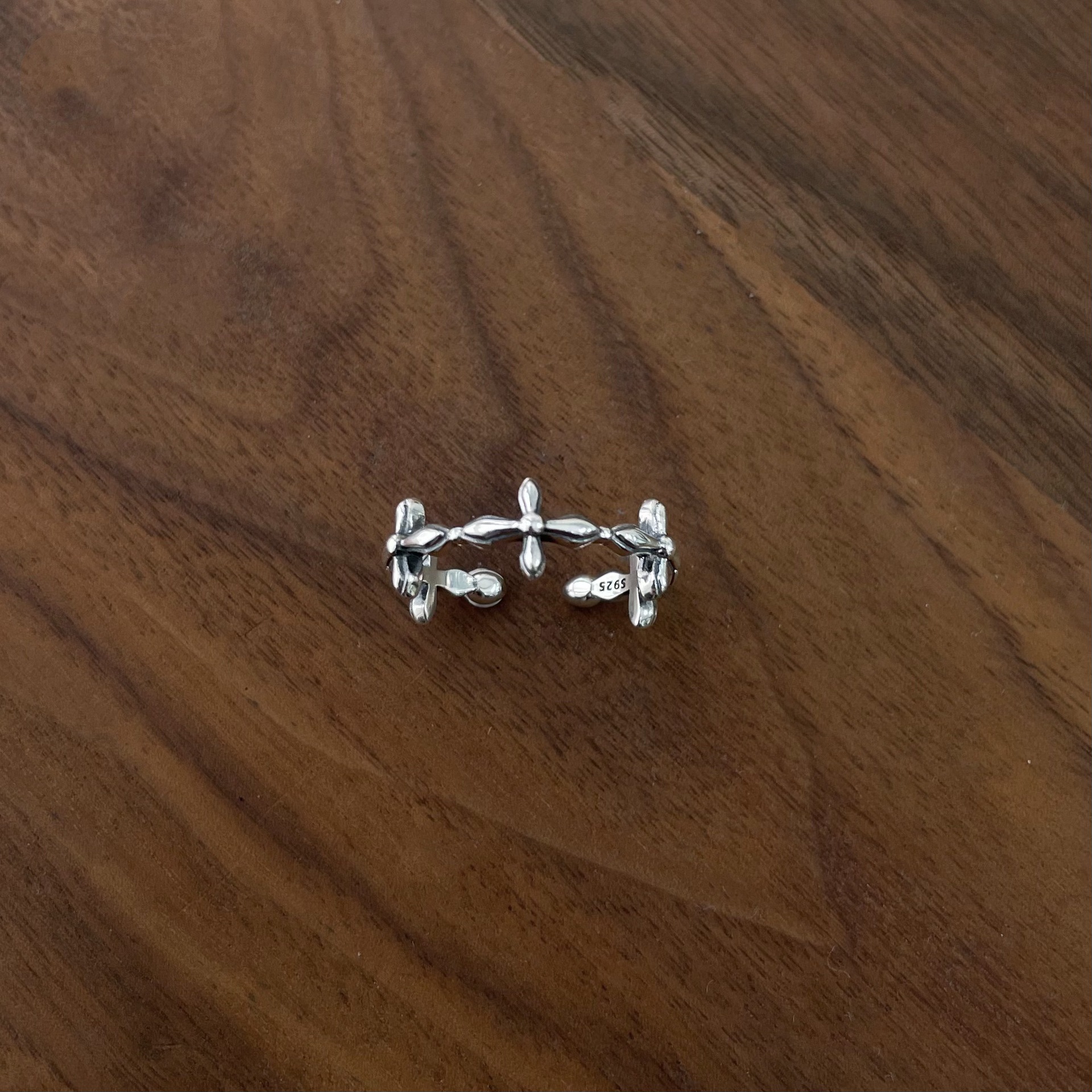 S925 Sterling Silver Irregular Cross Opening Ring Retro Fashion All-match Simple High-end Niche Design
