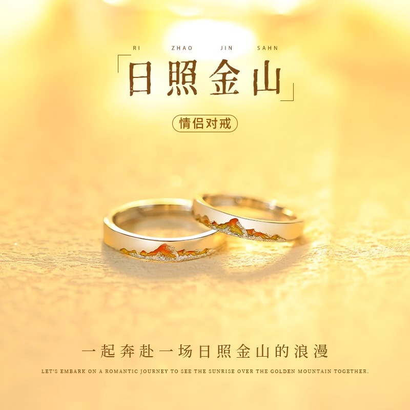 Chinese Valentine's Day Gift Rizhao Jinshan Couple Ring Pair Silver Ring Niche 999 Pure Silver Gift for Girlfriend or Boyfriend
