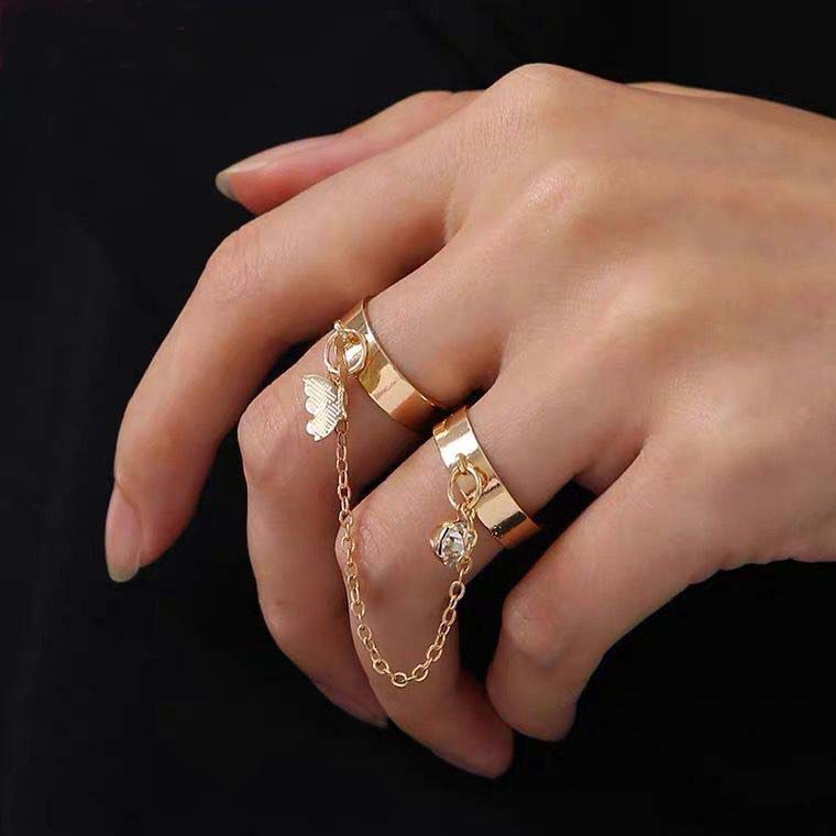 Europe and the United States creative personality disco chain combination ring punk fan opening adjustable men's and women's one-piece butterfly ring