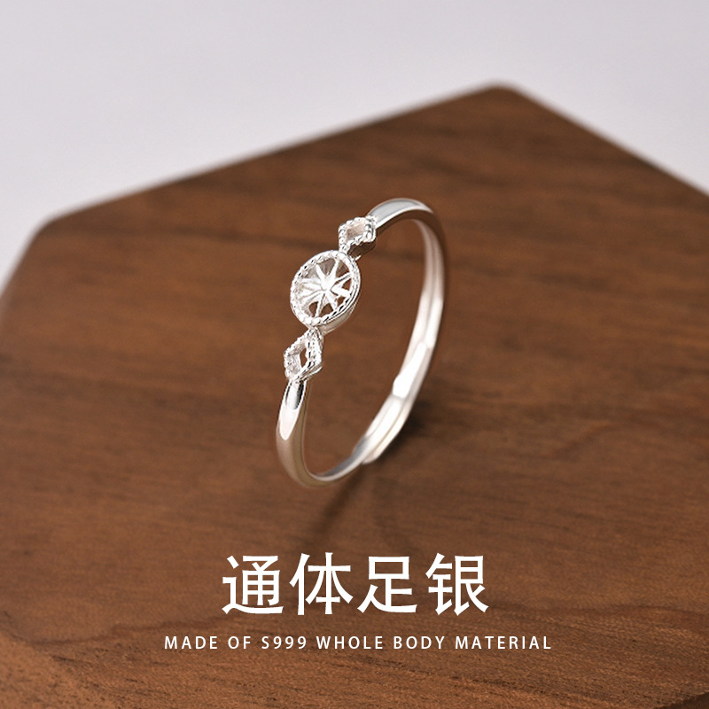 S999 Sterling Silver Jewelry Eight-Pointed Star Ring Elegant Versatile Simple Ring Opening Adjustable Index Finger Accessories Wholesale