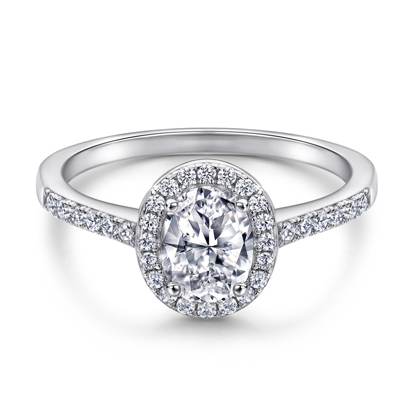 S925 Sterling Silver Ring Women's European and American Kajia Silver Ring Oval Zircon Engagement Wedding Ring Ring Carved
