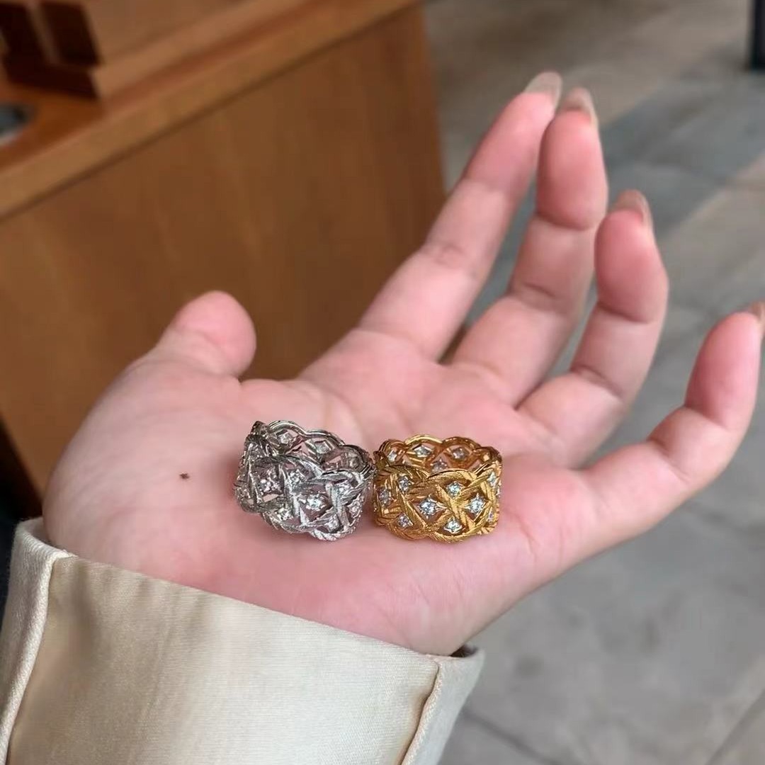 Italian Craft Antique Light Luxury High Jewelry High Carbon Diamond Wire-drawing Craft Rhomboid Ring