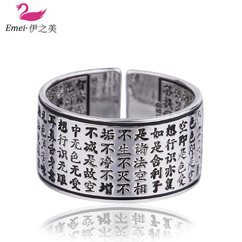 2020 new silver-plated explosions Heart Sutra Buddha ring living mouth retro do old national wind tail ring wholesale