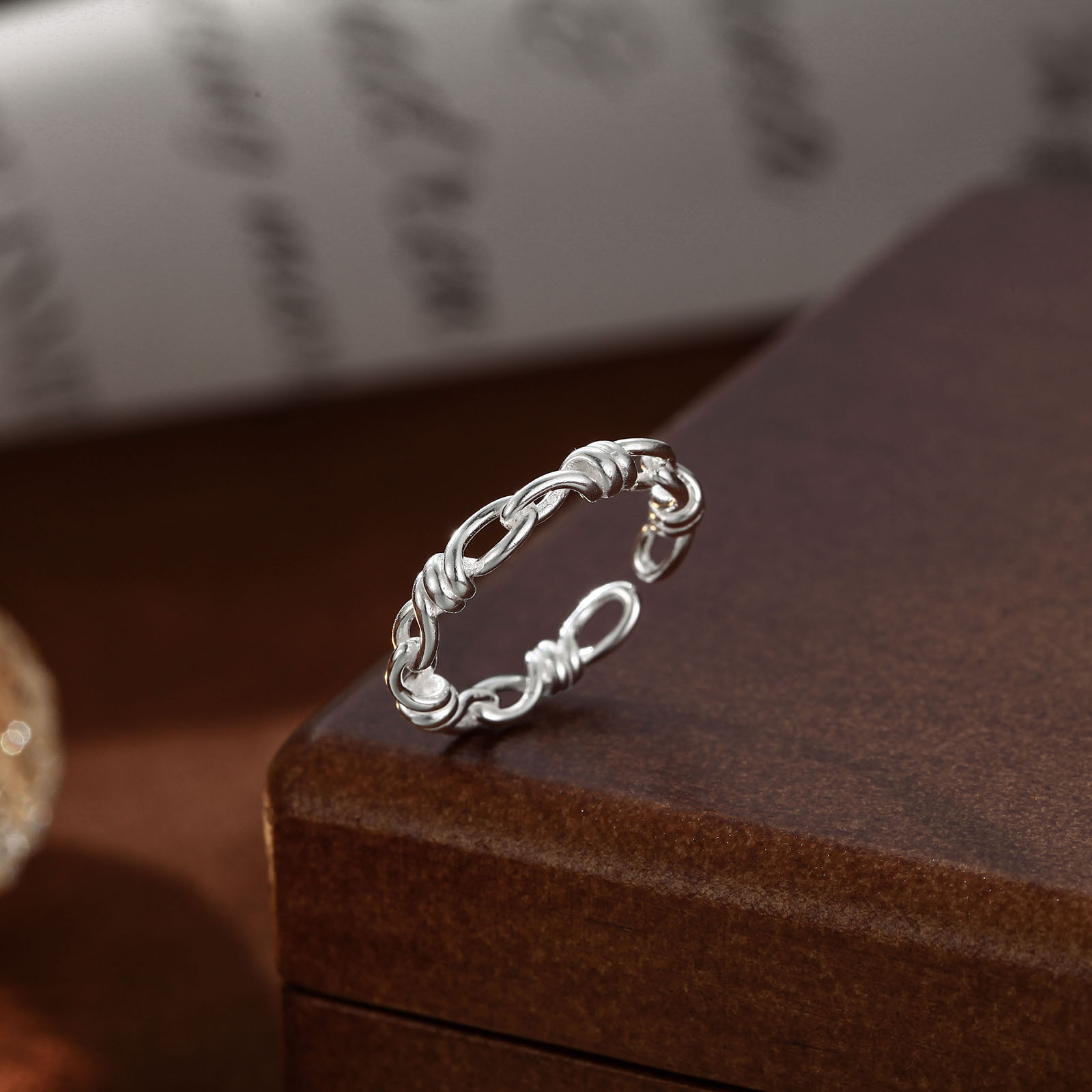 S999 Sterling Silver Fashionable Simple Rattan Love Couple Ring Personalized Open Ring Couple Ring Jewelry Wholesale
