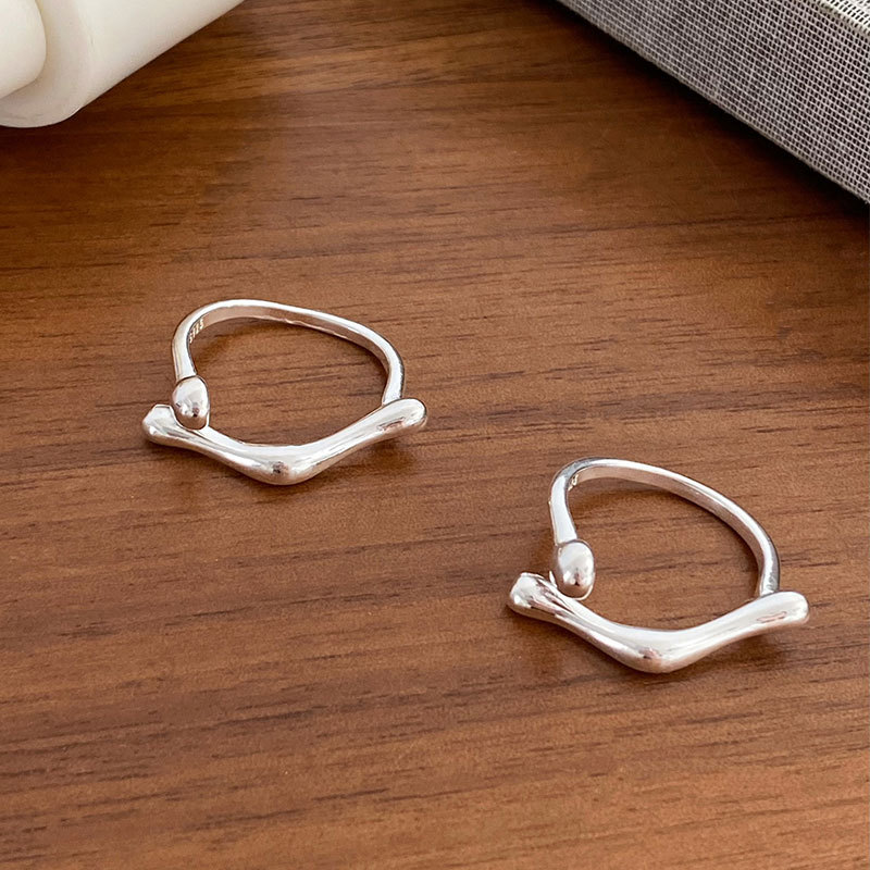Ganjia S925 sterling silver simple niche irregular geometric parallel ball open ring men's and women's index ring ins