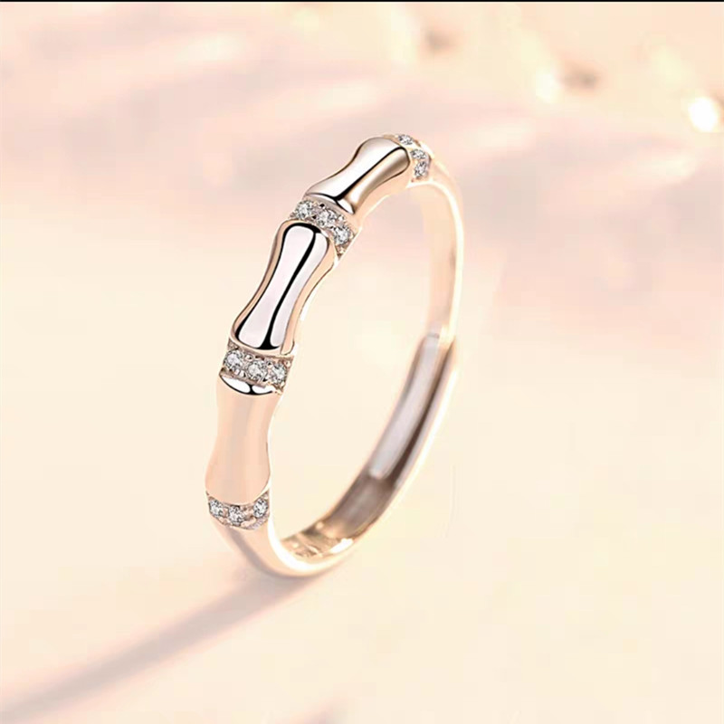 Fangxing s925 silver ring Japanese-Korean style fashion diamond-encrusted bamboo female ring temperament personality adjustable couple index finger