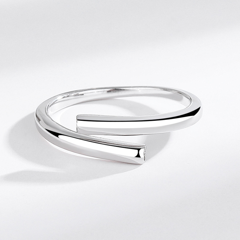 S925 Sterling Silver Korean Style Simple Geometric Open Ring Asymmetrical Stylish Trendy Index Finger Ring for Women Cross-Border Fashion