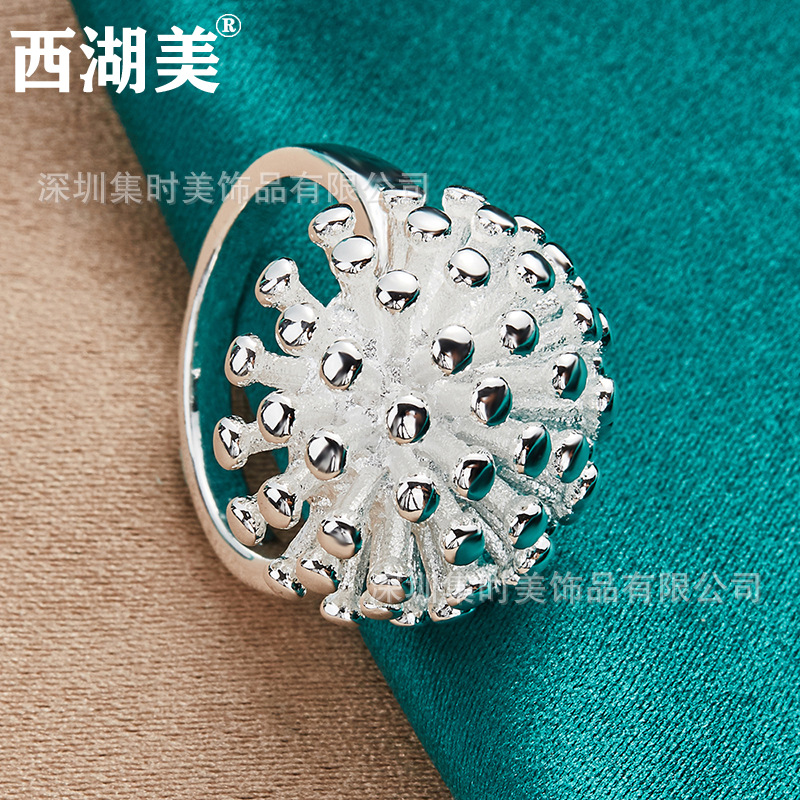 Silver fireworks coral ring women's fashion jewelry jewelry West Lake Beauty