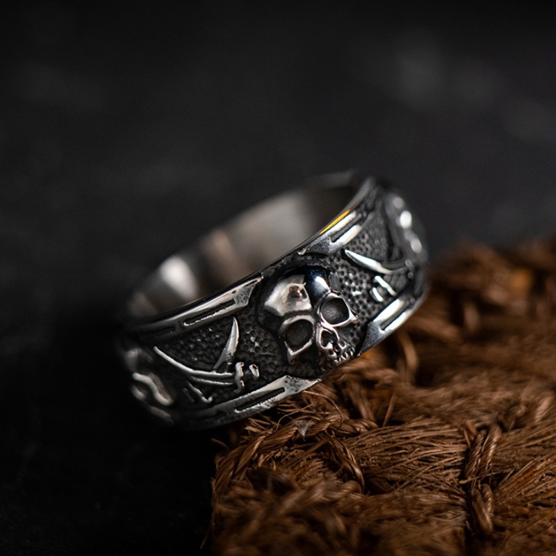 European Medieval Skull Pirate Flag Thai Silver“乔罗杰” Retro Ring Men's Rock Open Ring