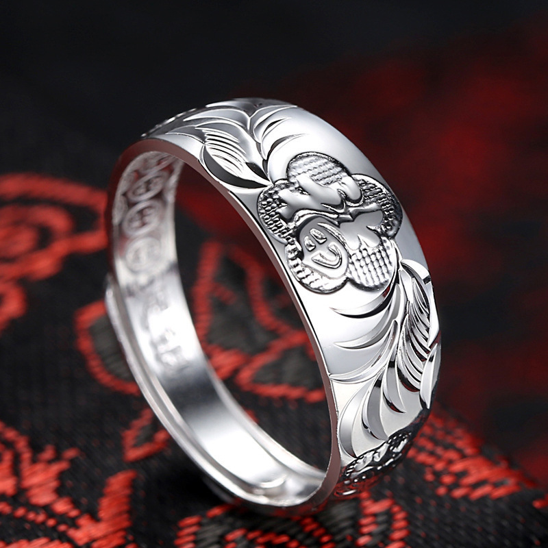 Peony Flower 999 Silver Plated Ring for Women Retro Old People Silver Living Ring for Middle-aged and Elderly People Send Mother, Grandma and Mother-in-law