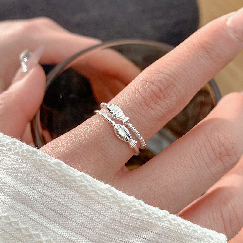 New Concept S925 Sterling Silver Micro Diamond Small Fish Ring Instagram Style Fashionable Simple Exquisite Cute All-match Double-layer Ring