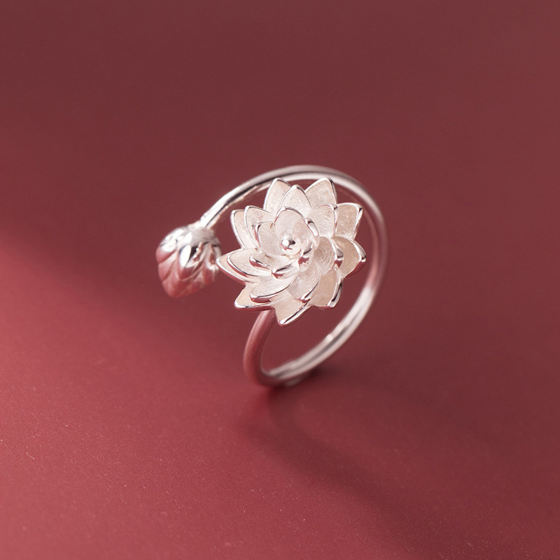 Elegant Lotus Ring Chinese Style Ladies Temperament Fresh Mori Flower Lotus Open Finger Ring E-commerce Supply