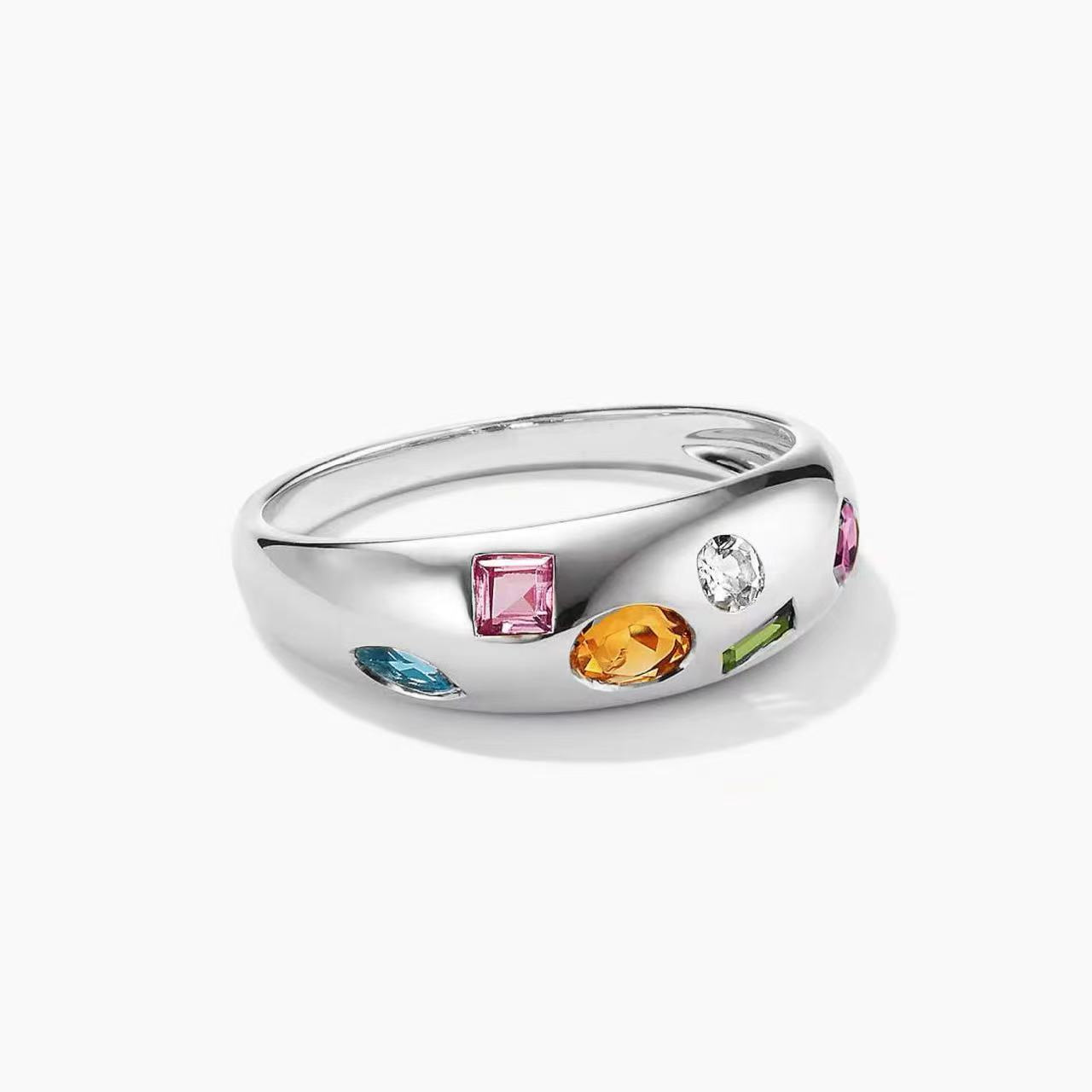 Cross-Border Hot-Selling S925 Sterling Silver Diamond-Encrusted Colorfulful Zircon High-End Ring Ring European and American Style Independent Station Hand Jewelry