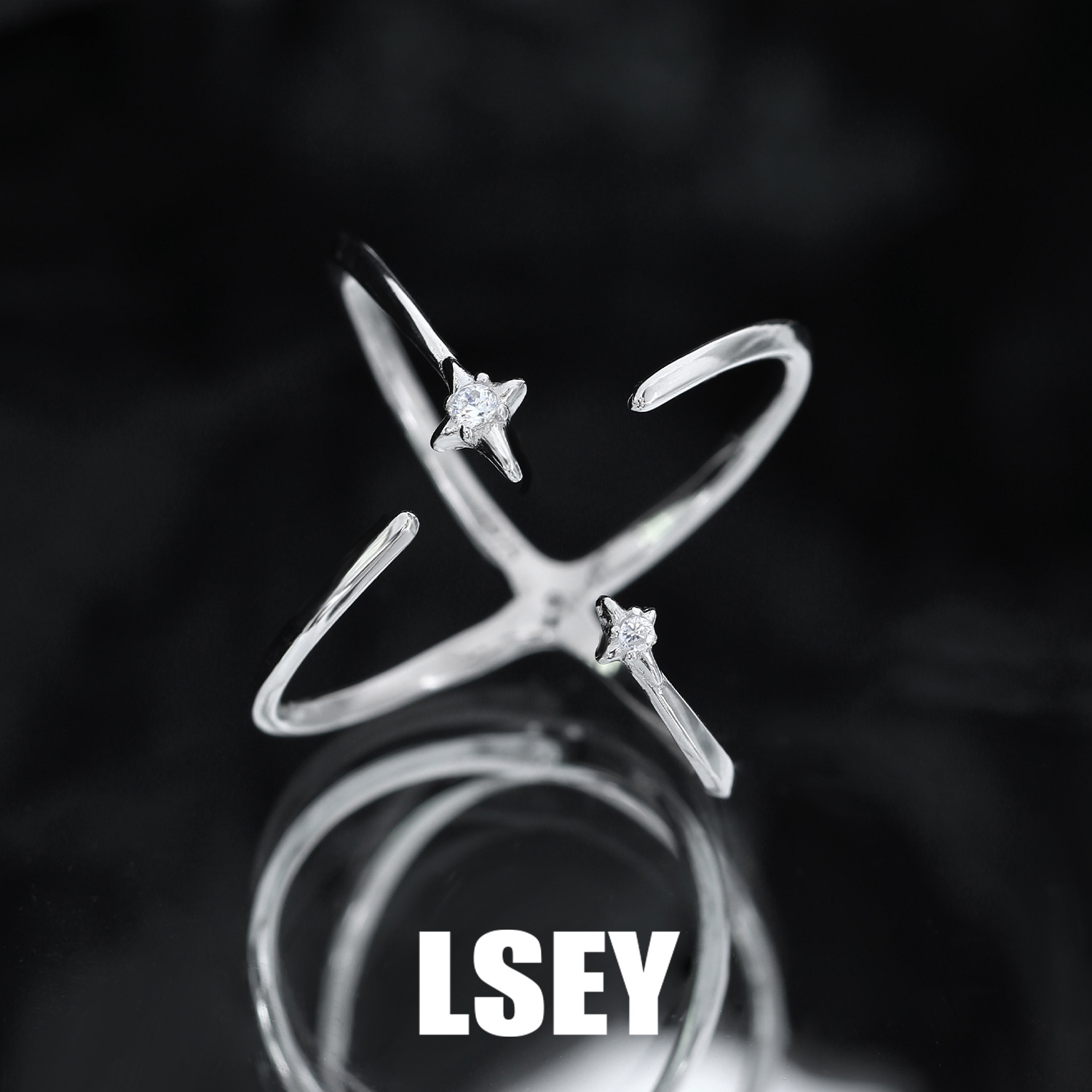 Under Rong Tree S925 Silver Mobius Cross Line Diamond Ring Women's Minimalist Niche Opening Adjustable Ring