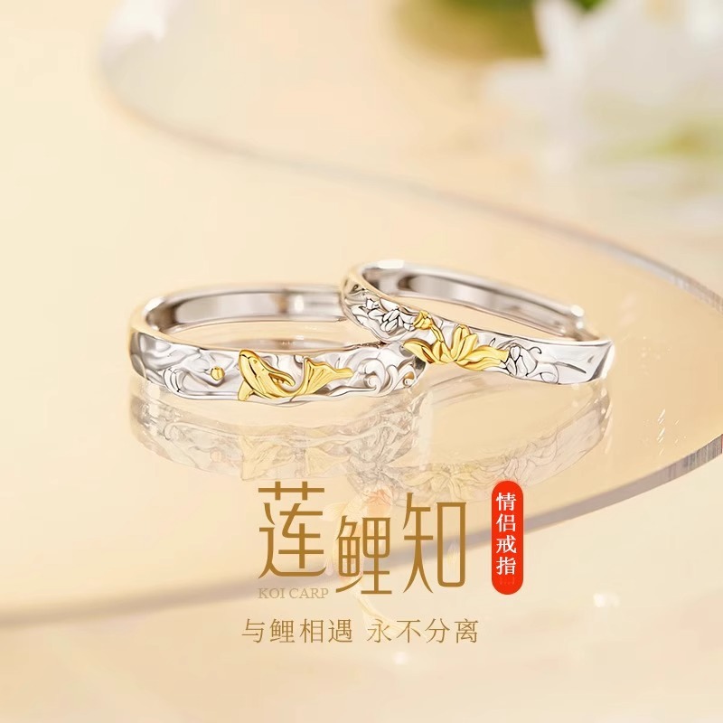 Lotus carp know lovers ring S925 sterling silver ring a pair of men and women's niche design Tanabata gift for male girlfriend