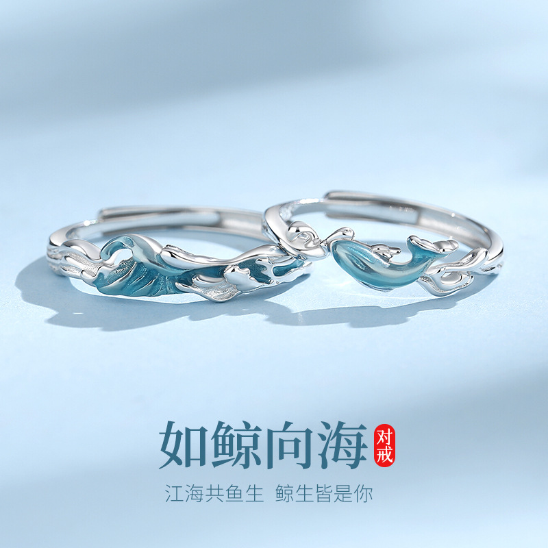 Tichia Original Whale-To-The-Sea Couple Ring S925 Sterling Silver Accessible Luxury High-End Enamel Men's and Women's Open Ring