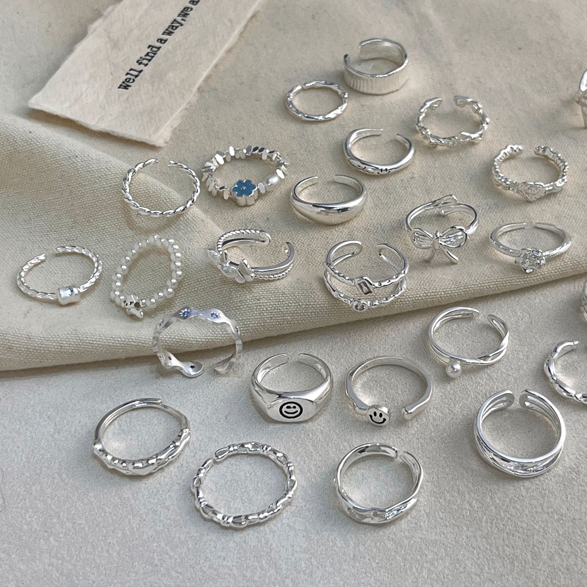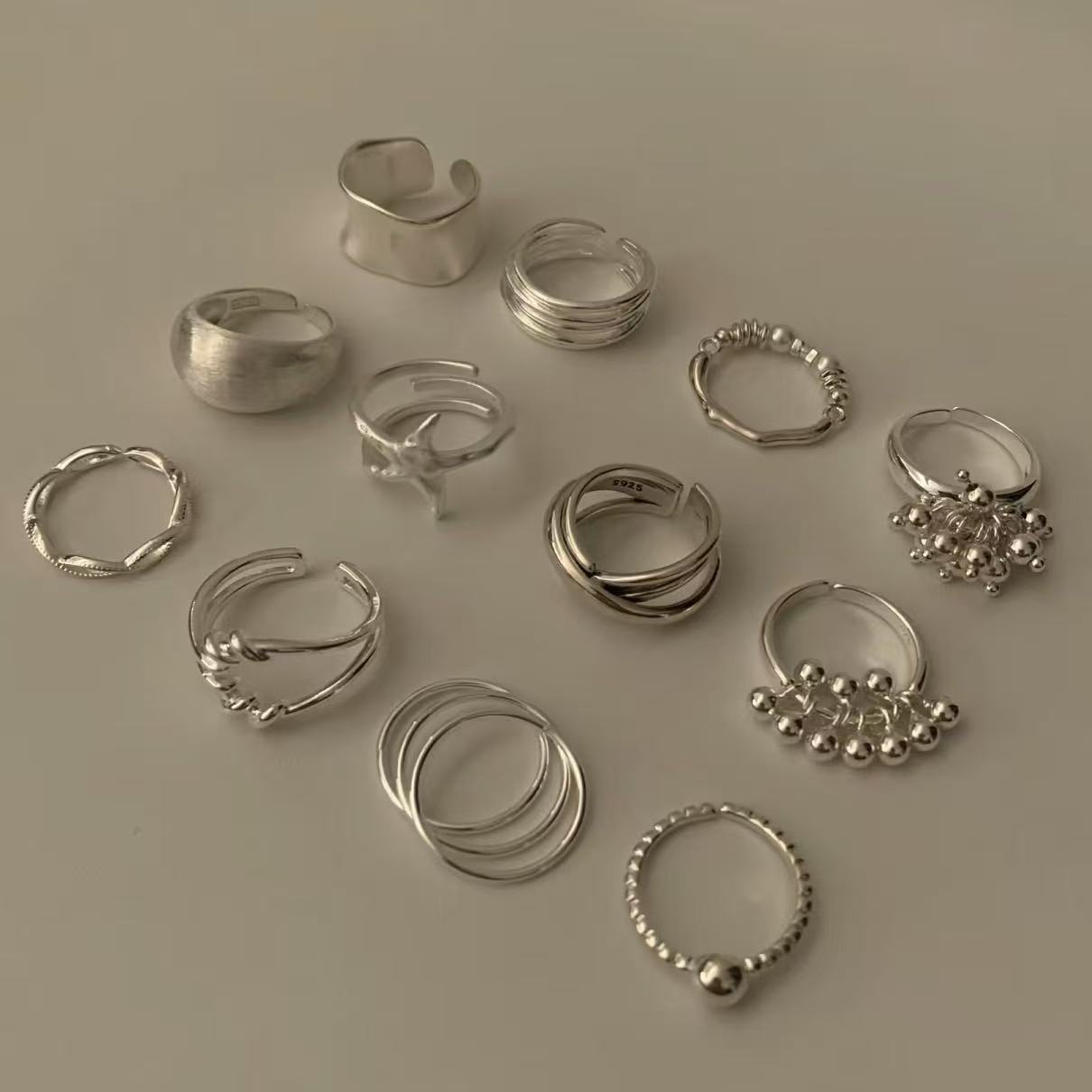 Original stars positive and negative two wear sterling silver ring cold wind S925 niche Joker high sense ring silver jewelry wholesale