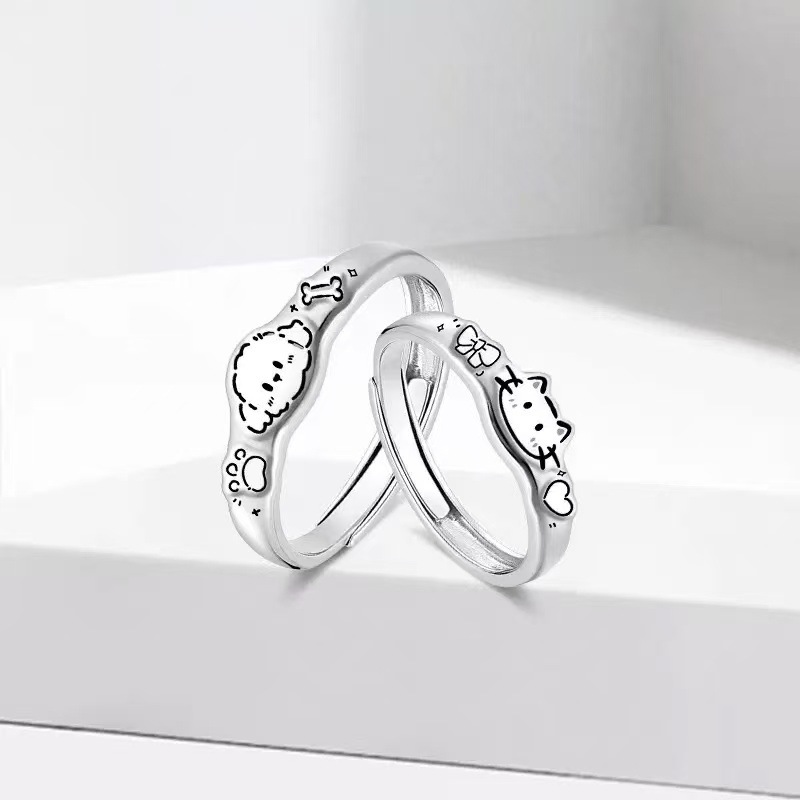S999 Sterling Silver Original Kt Cat Pacha Dog Graffiti Ring Cute Cartoon Niche Pair Ring Couple Style Plain Ring Ring