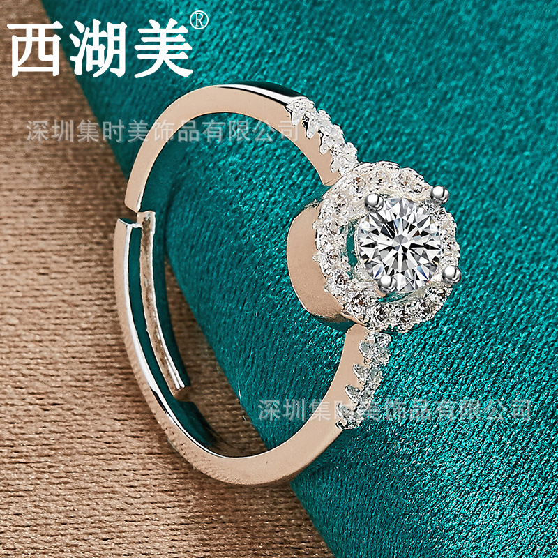 West Lake beautiful silver jewelry fashion adjustable opening AAA zircon ring female jewelry jewelry