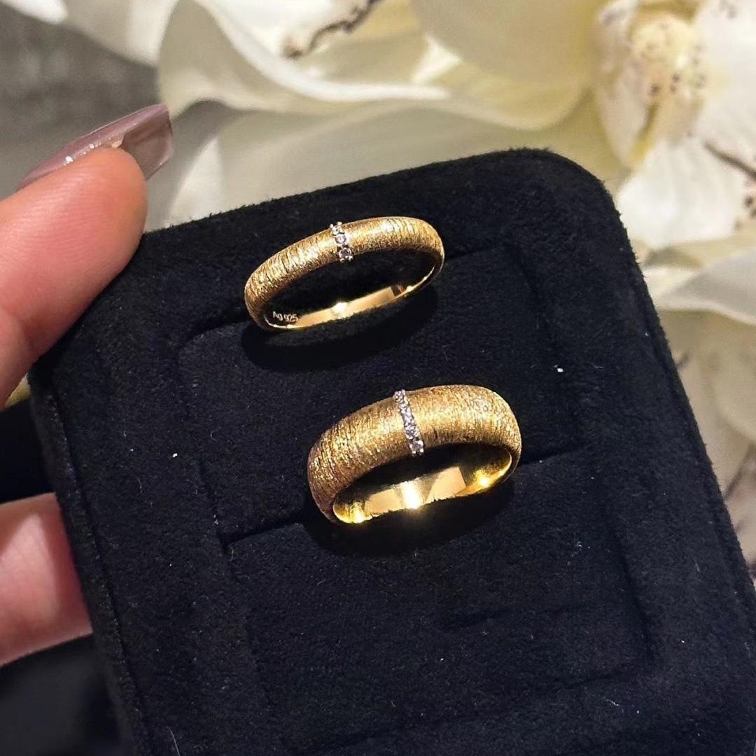 Middle Ages Silk Plain Ring Women's 925 Sterling Silver Same Style Row Diamond Ring Couple's Niche High-end Light Luxury New Product