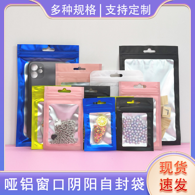 Color window self-sealing bag matte aluminum transparent bone bag jewelry sealing bag electronic accessories packaging bag Yin and Yang aluminum foil bag
