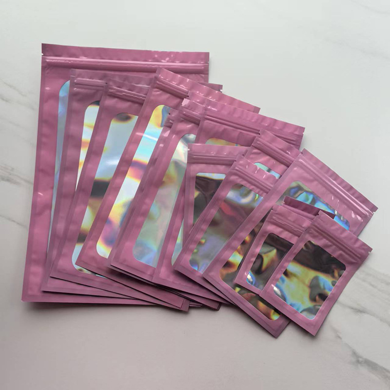Pink Laser Window Bone Bag Jewelry Gift Laser Yin and Yang Ziplock Bag Beauty Clothing Decoration Digital Product Packaging