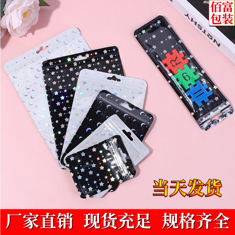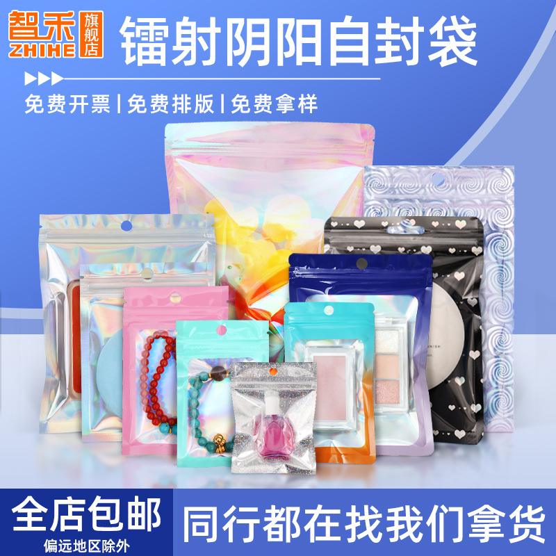 Laser Flash Yin and Yang Self-sealing Bag Jewelry Storage Sealed Bone Bag Digital Small Accessories Transparent Colorful Packaging Bag