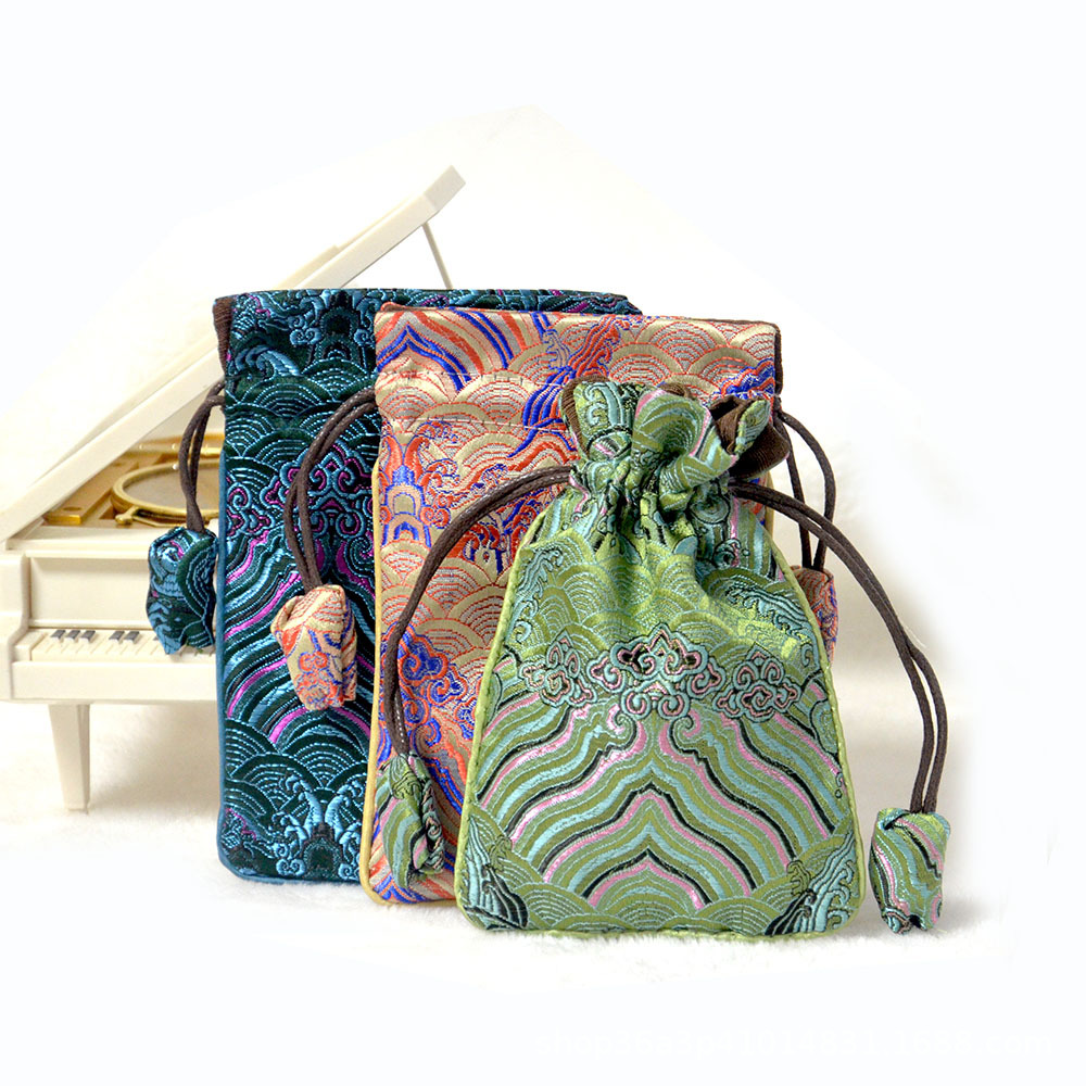 Brocade forging drawstring storage bag drawstring high-end double-layer cotton and linen Wenwan cloth bag bracelet jewelry small bag