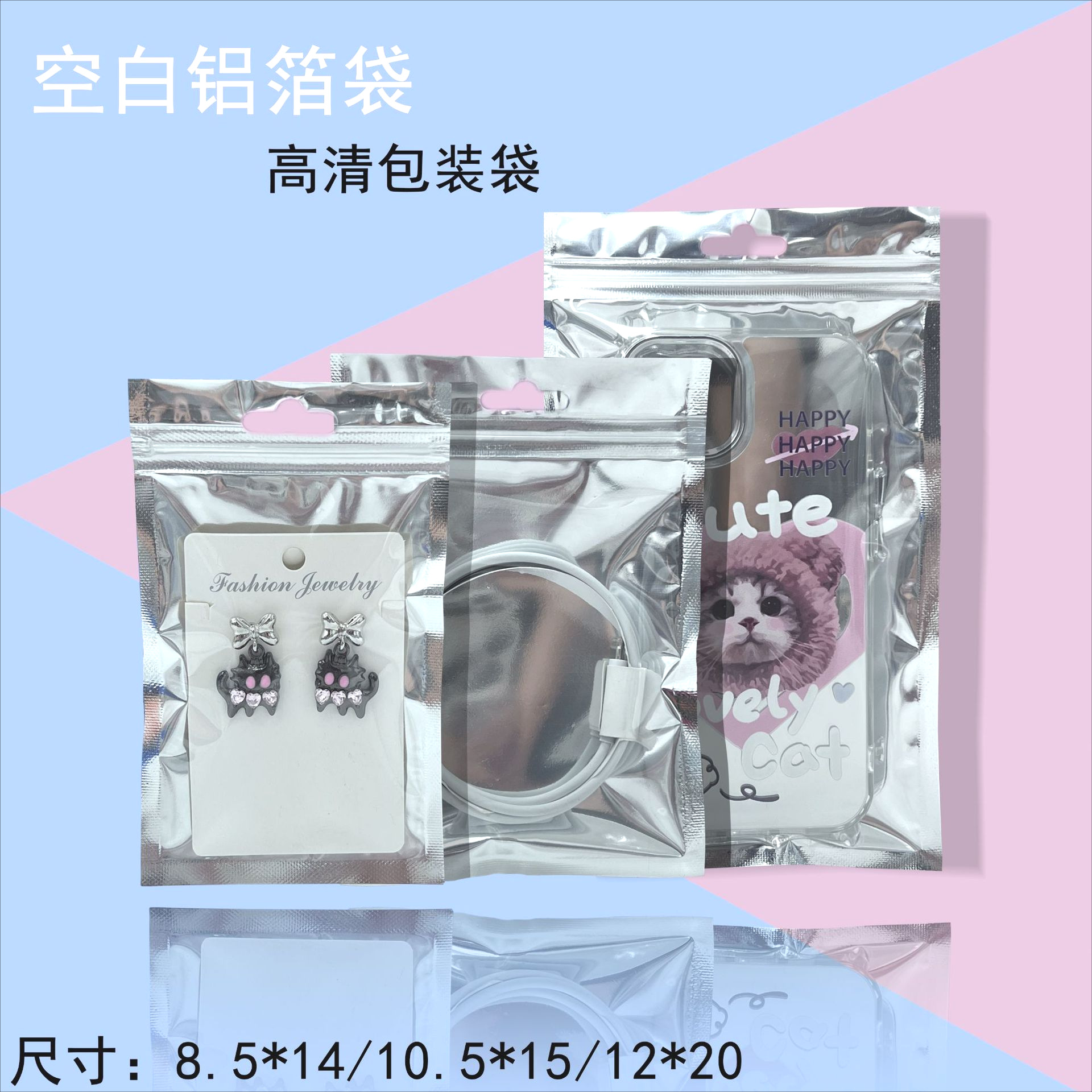 Blank Transparent Case Ziplock Bag Aluminized Mobile Phone Case Packaging Bag Small Jewelry Bag Data Cable Plastic Seal Bag Free Shipping