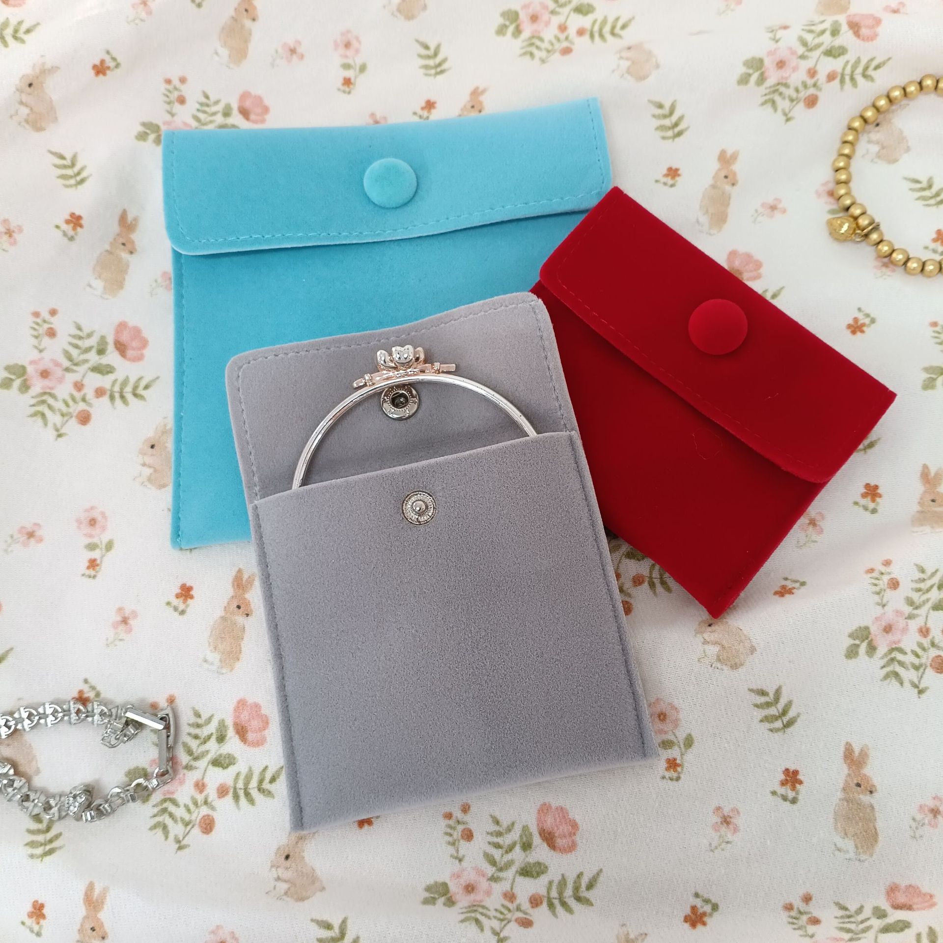 Mini Snap-On Velvet Bag Pendant Finger Puppet Bracelet Gift Packaging Bag Portable Earphone Key Wear-Resistant Storage Bag