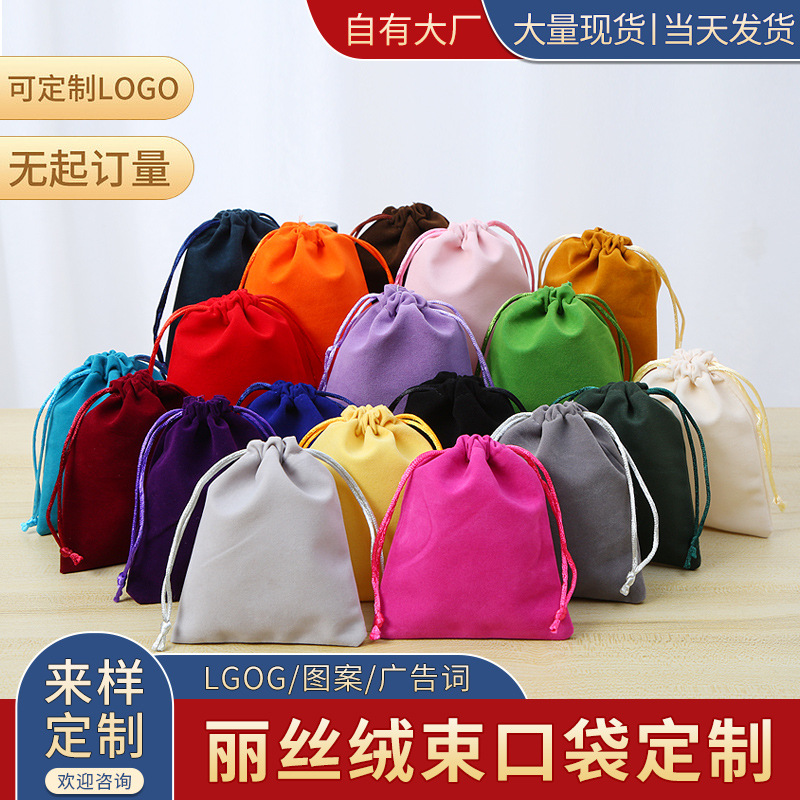 Flocked Drawstring Bags Wholesale Printed for Jewelry Gift Packaging Storage Bags with Logo Customization