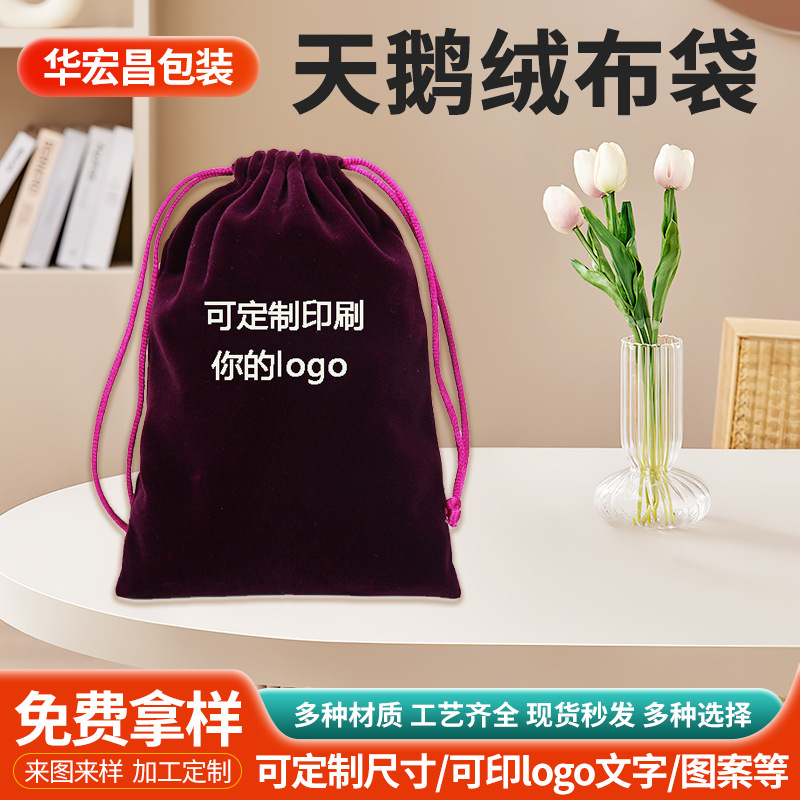 Factory Flannel Bag Bundle Pocket Jewelry Drawstring Bag Velvet Storage Bag Flannel Packaging Bag Dustproof Bag Printable LOGO