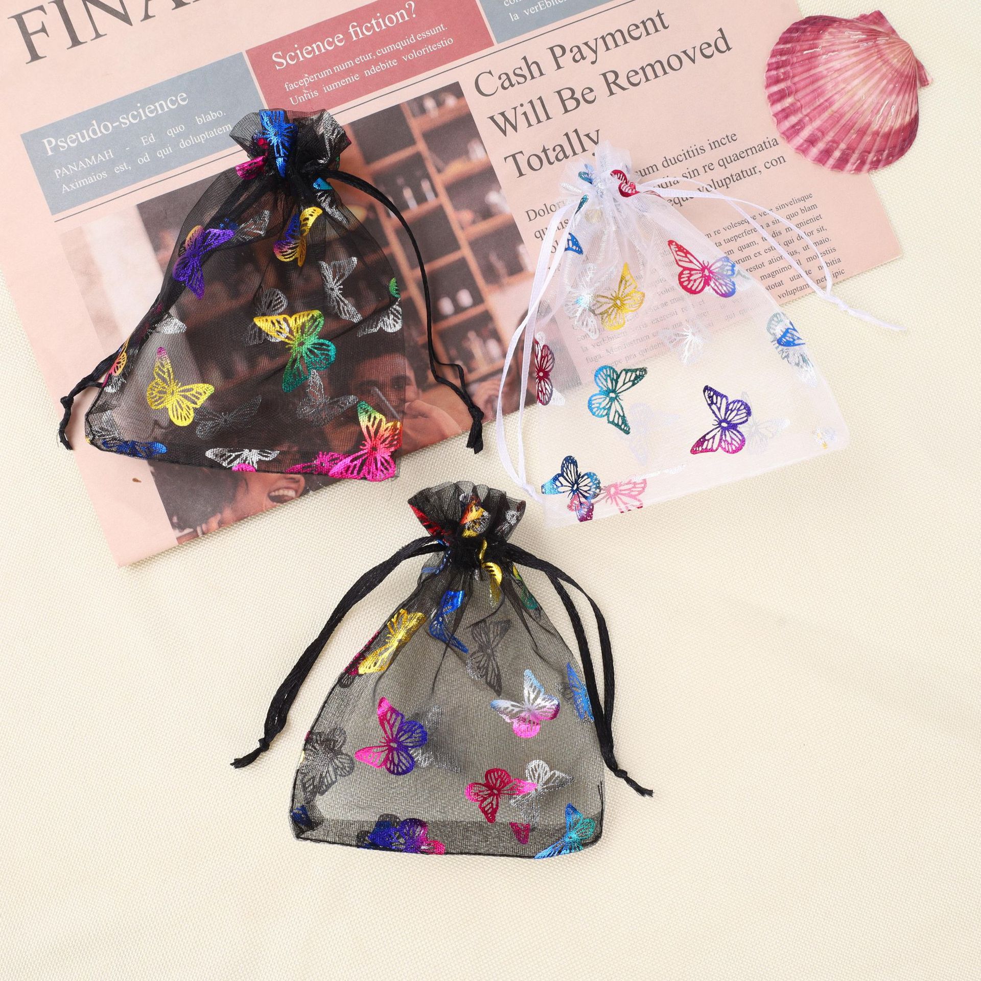 Butterfly Printed Bronzing Mesh Flap Pocket Pants Organza Bag Gift Bag Jewelry Storage Small Bag Wholesale Jewelry Bag