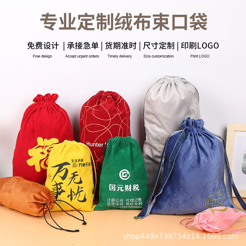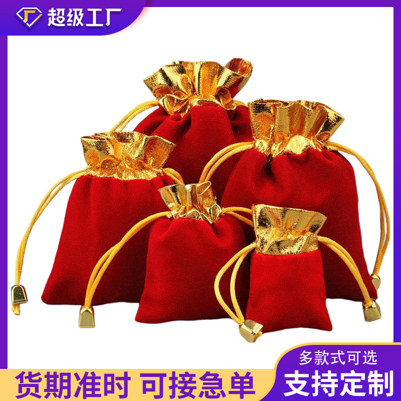 Factory custom flannel high-grade jewelry storage bag gift girdle packaging flocking small pocket cultural play brocade bag