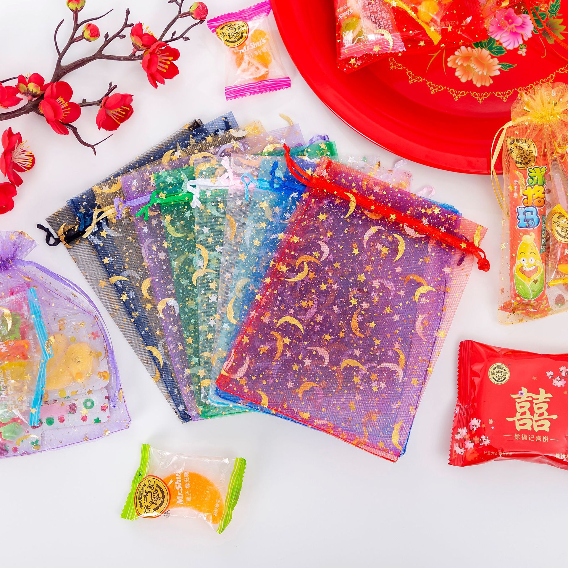 Spot supply star Moon hot stamping yarn bag/Christmas party trinkets candy bag jewelry storage mesh bag
