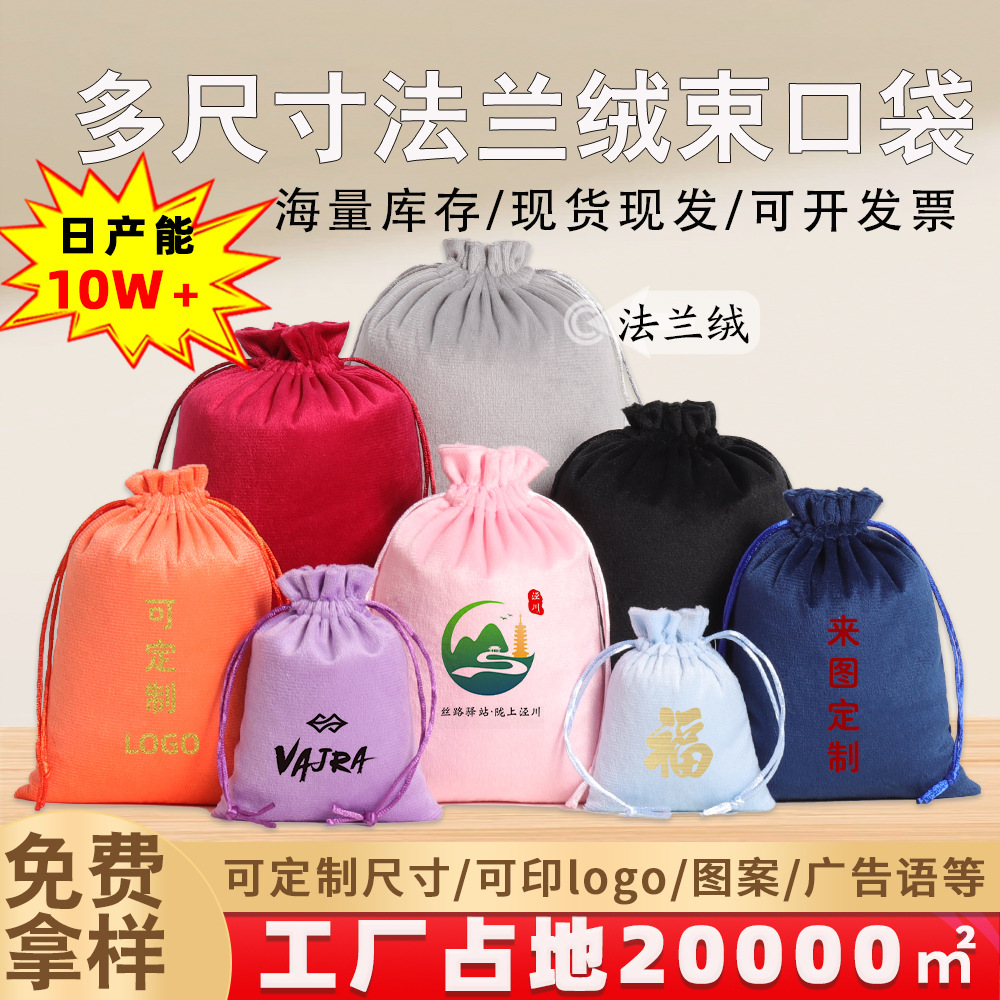 Flannel Drawstring Pouch Wholesale Small Fabric Bag Jewelry Storage Velvet Drawstring Bag Custom