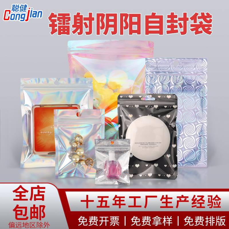 Customized Colorful Laser Film Yin and Yang Bone Bag Laser Ziplock Bag Small Gradient Jewelry Seal Bag 14 Silk Seal Bag