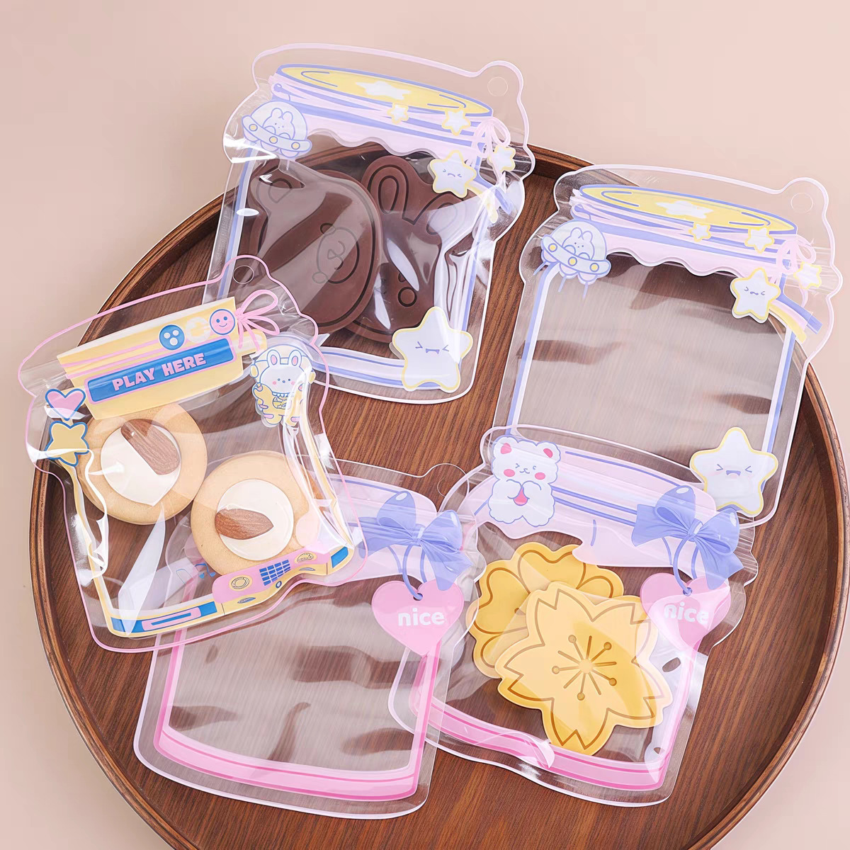 New Cartoon Transparent Ziplock Bag Snack Candy Packaging ins Girl Hairpin Jewelry Storage Bag Small Fresh Bag