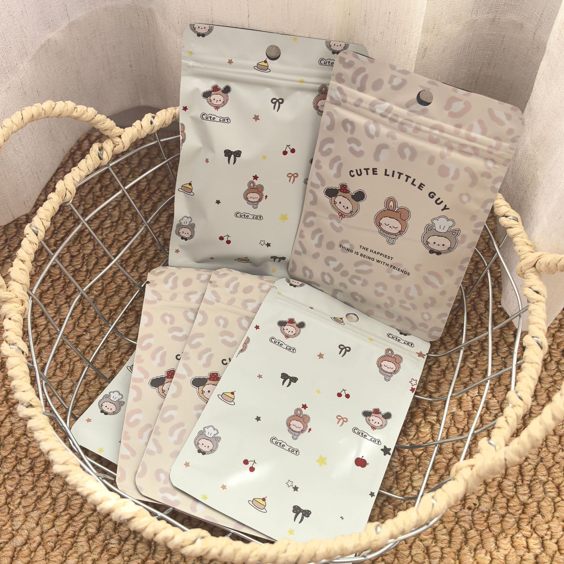 Ins-Style Cartoon Doll Figurine Punch Self-Sealing Bag Cute Snacks Candy Accessories Card Holder Planner Laminated Blind Bag