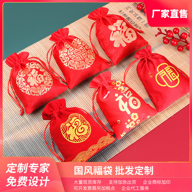 Manufacturer Wholesale Brocade Small Lucky Bag Packaging Bag Red Cloth Bag Ancient Style Gift Blessing Bag Brocade Bag Blessing