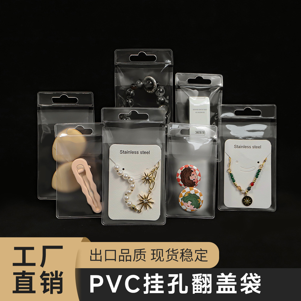 Finger powder puff hanging hole packaging bag pvc transparent earrings necklace flip bag aircraft hole hanging rack jewelry bag