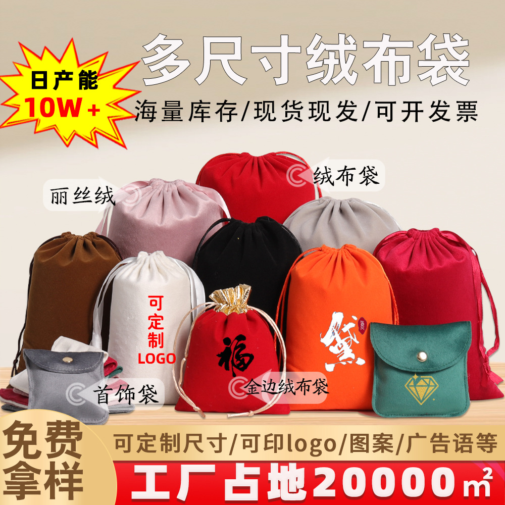 Velvet Drawstring Pouch Jewelry Bag Accessory Packaging Small Cloth Bag Black Velvet Bag Custom