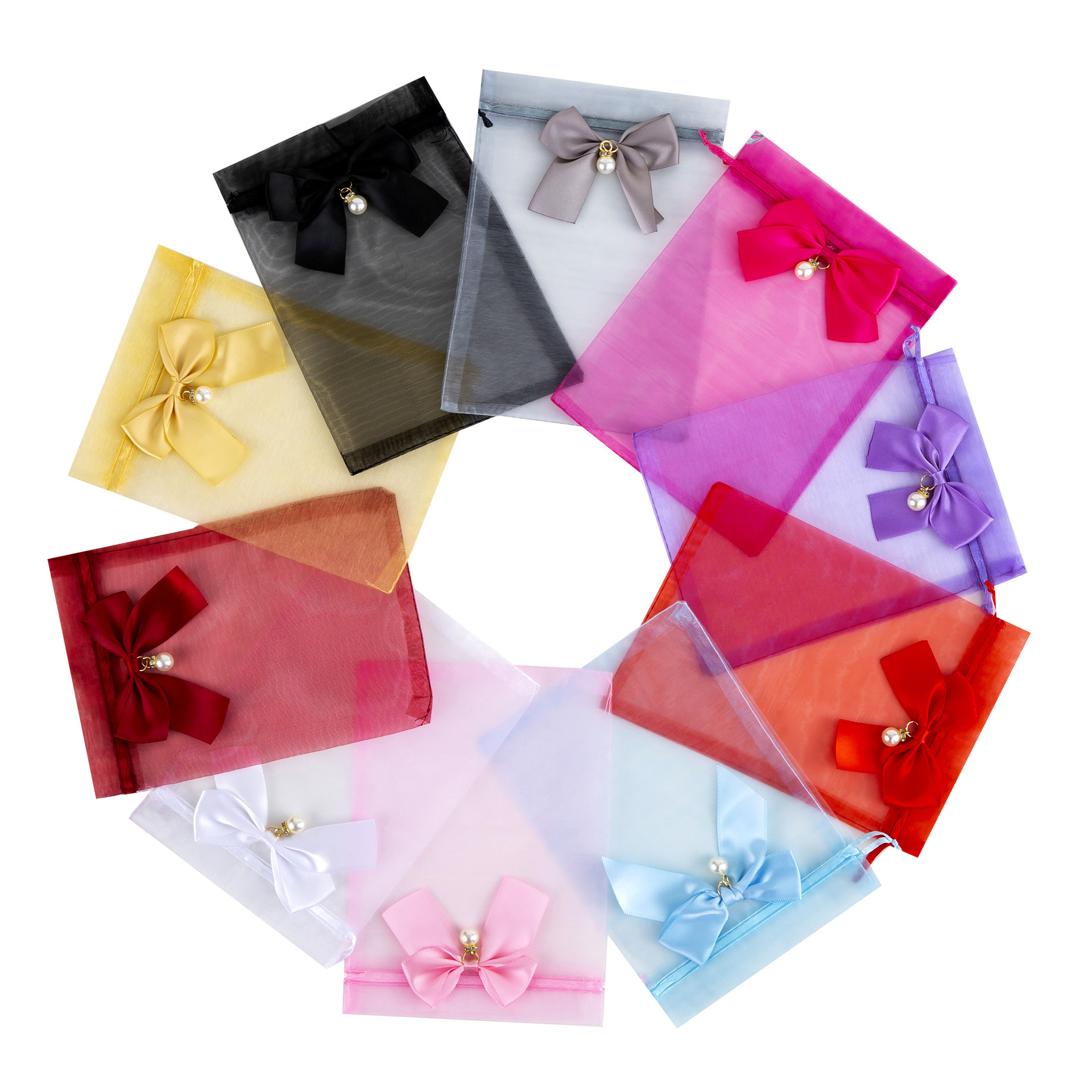 Cosmetic Sample Storage Bag, Pearl Bow Drawstring, Organza Bundle Flap Pocket Pants, Transparent Small Gift Bag