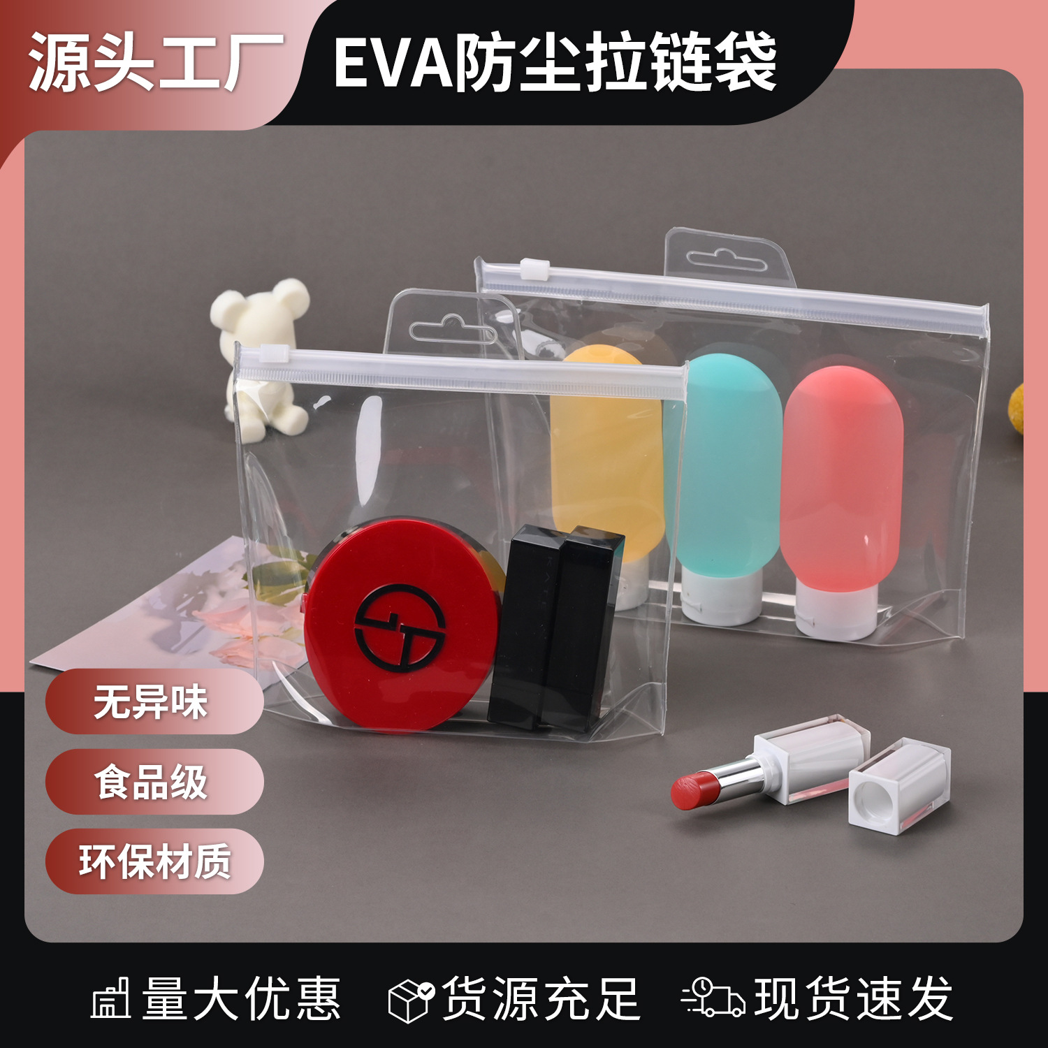 Small jewelry packaging bag eva zipper bag sealed bag plastic frosted packing bag transparent pvc self-sealing bag wholesale