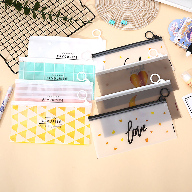 Pe Frosted Zipper Bag Student Stationery Pen Refill Bag Transparent Ring Zipper Bag Self-Sealing Bag Packaging Bag Storage