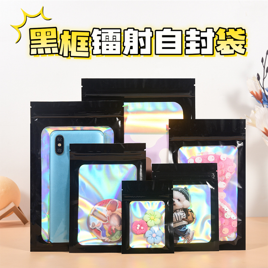 Cross-Border Black Laser Ziplock Bag Transparent Yin and Yang Seal Bag Fishing Gear Jewelry Makeup Nail Packaging Bag Wholesale