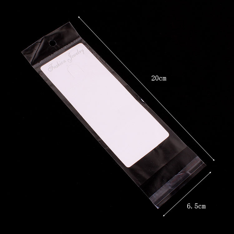 Factory direct packaging jewelry transparent opp bag 6.5*20cm with hanging tape glue inside the empty 6.5*15cm