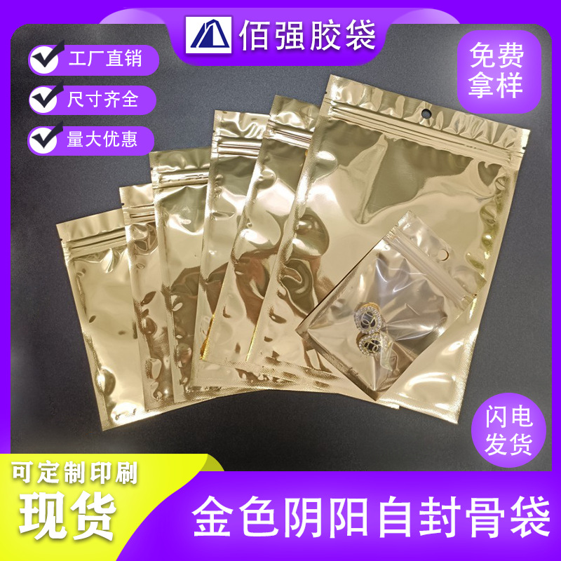 Gold Yin-Yang Self-Sealing Bags, Jewelry Aluminum Foil Bags, Round Hole Yin-Yang Bone Bags, Hardware Plastic Bags, Digital Adhesive Bags in Stock