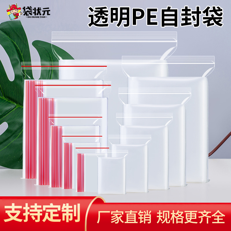 Self-sealing bag transparent food grade pe sealed fresh-keeping bag color packaging bag thickened plastic jewelry storage bag